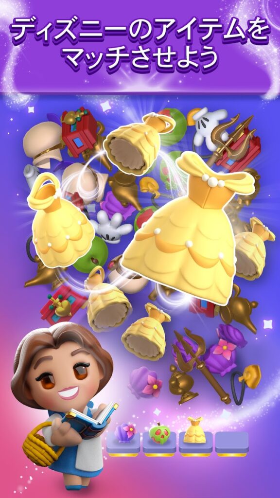 「Disney Magic Match 3D」は、ディズニーやピクサー作品に登場するアイテムを集める3Dマッチングパズルゲームです。