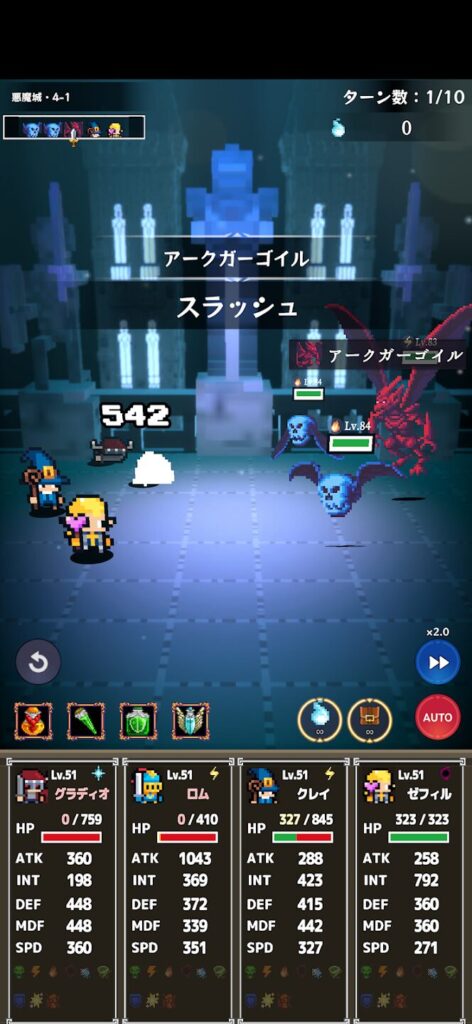 ただしボス戦では回復やバフアイテムを手動で使うと突破しやすくなるので、強敵相手のときは少し操作してみてください。
