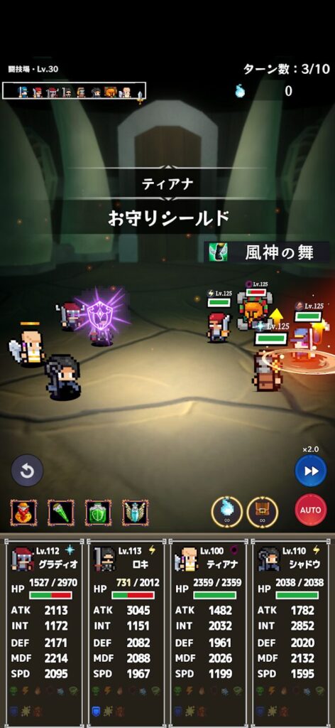 バトルはフルオートで進みますが、戦闘中に回復やバフアイテムを使うことができます。