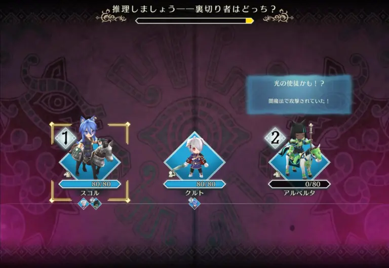 投票で外しても最後のバトルで勝てば問題ないから、推理が苦手でも楽しめるのがいいですね。