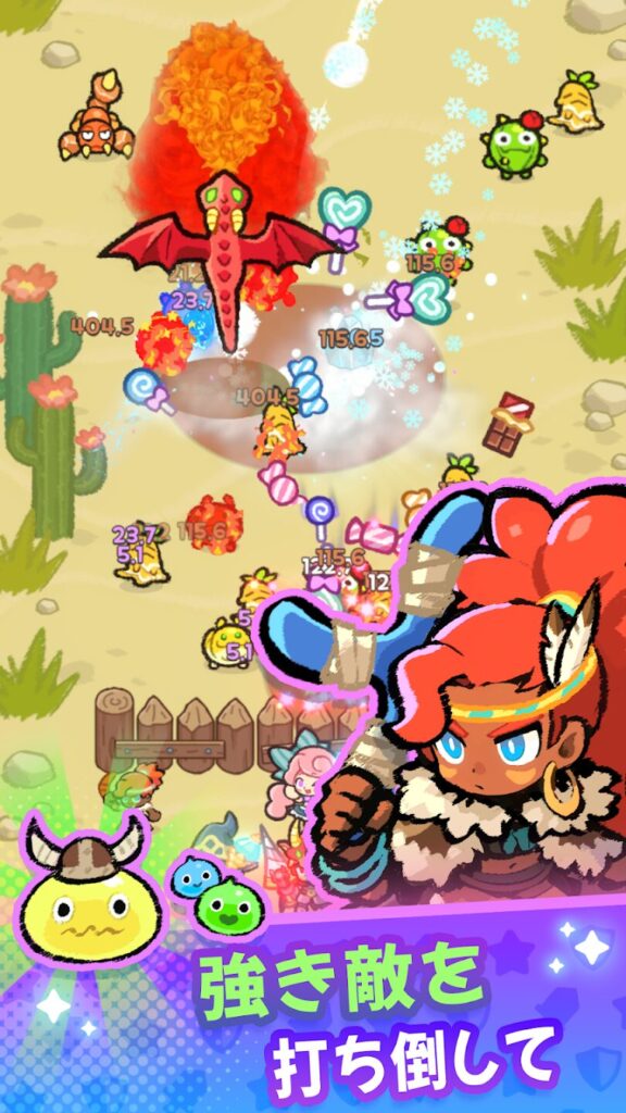 キャンディなどのスキル演出もポップで、飽きずに続けられています。