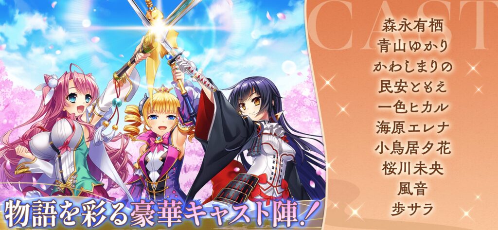 60人以上の可愛い恋姫たちが作品の垣根を越えて活躍する壮大なストーリーは、フルボイスで没入感たっぷりです。