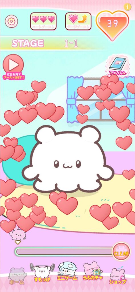 すもっぴを育成すればハートが集まりやすくなり、アルバムも埋めやすくなります。