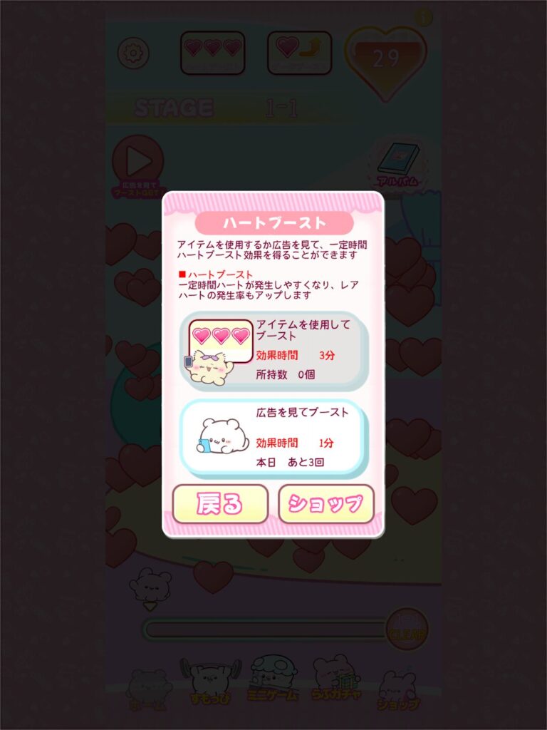 ミニゲームでもハートがもらえるので、余裕があればプレイしてみてください。