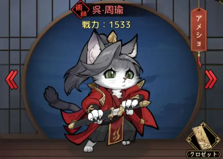 『ニャ国無双』は、三国志の英雄たちが可愛い猫の姿で登場する放置系カードバトルRPGです。