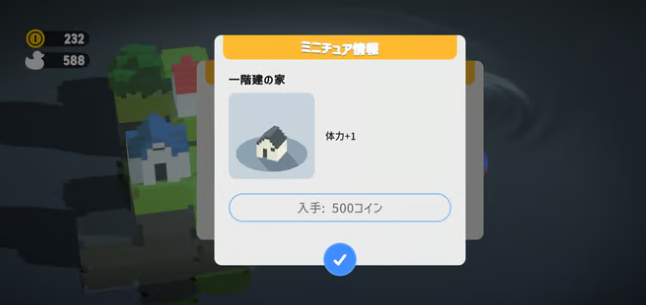 ステージをクリアすると「ミニチュア」を1つ持ち帰れます。