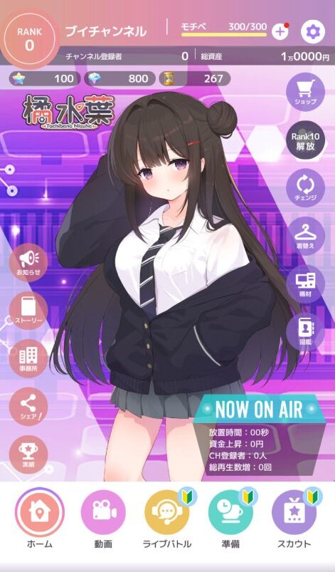スキマ時間で遊べるように作られているので、初めての方でも気軽にVライバー事務所の経営をスタートできます。