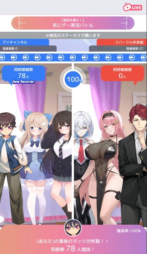 ライブバトルは非常にシンプルで、相手の数値を上回れば勝利となります。
